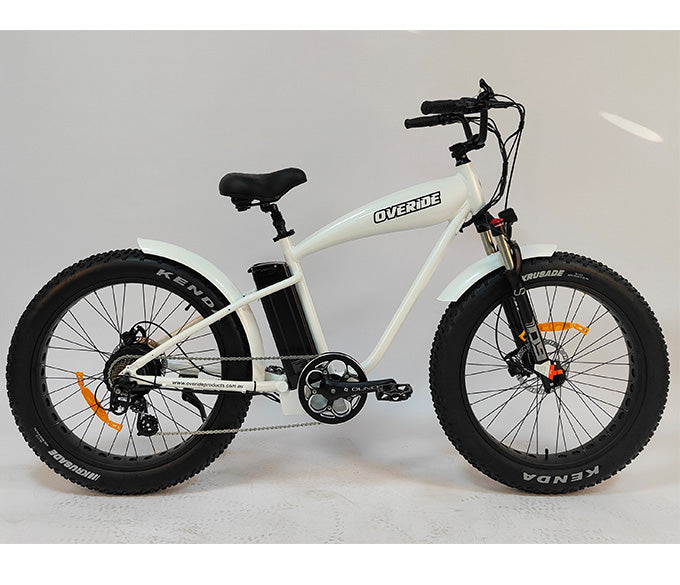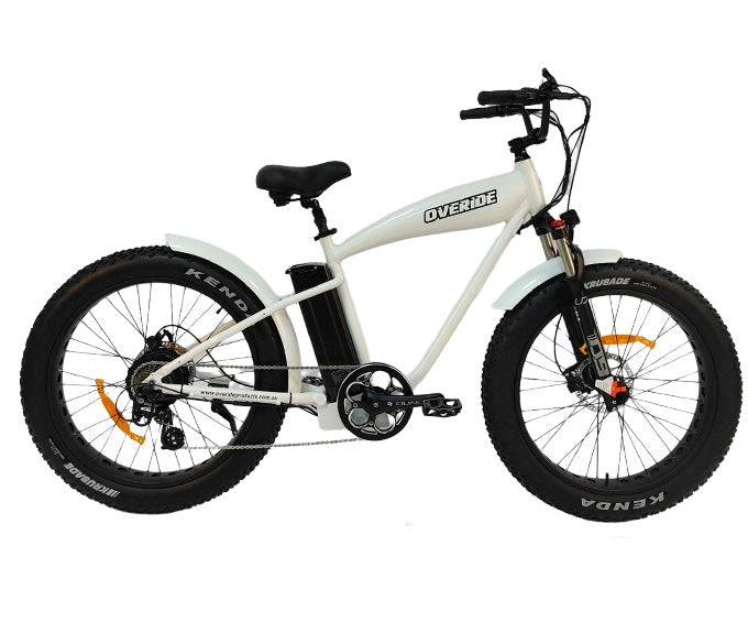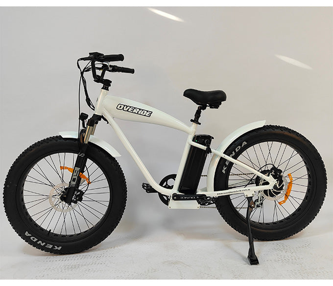 Turn heads and conquer the streets with the Overide Chopper-Style Fat Wheel Electric Bike. Designed for both style and performance, this electric bike combines a bold chopper aesthetic with modern engineering to deliver an unmatched riding experience.