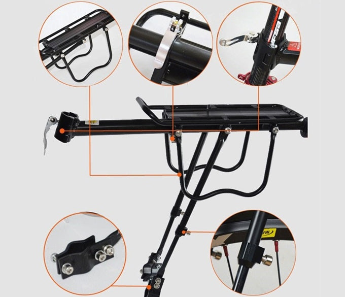 • Large Platform: Spacious top deck and side rails for attaching panniers, baskets, or other cargo bags securely.